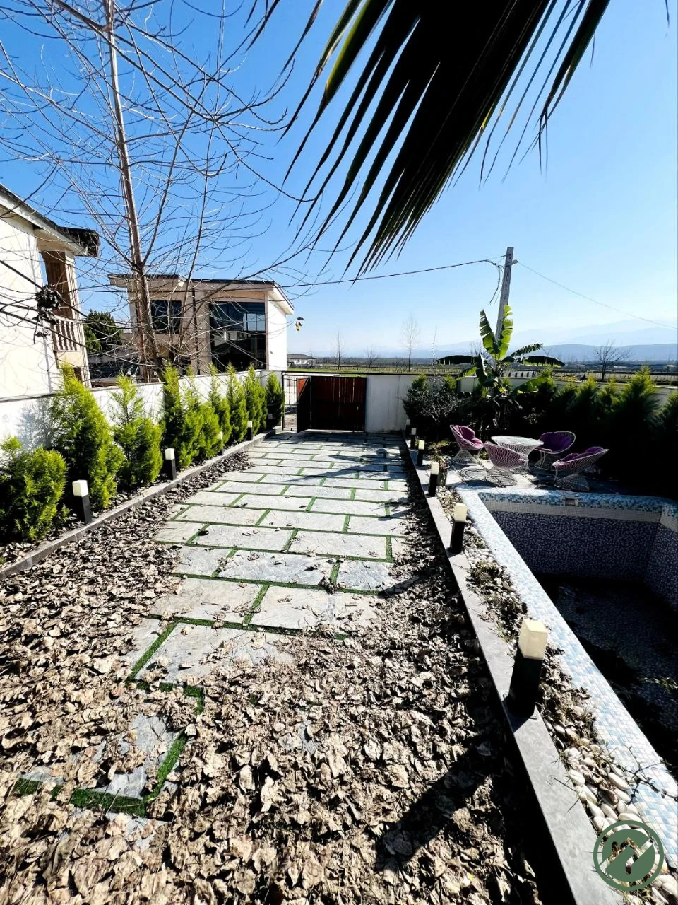 در قسمت حیاط، وجود یک استخر روباز فضای ویلا را جذابتر کرده و امکان استفاده در روزهای گرم سال را فراهم میسازد. ترکیب استخر با طراحی مدرن، حسی از لوکس بودن ایجاد میکند و به خریداران علاقهمند به خرید ویلا در مازندران یک مزیت قابلتوجه ارائه میدهد. کنار آن، باغچه محوطه را دیدنیتر کرده و فضای سبز دلنشینی فراهم شده است.